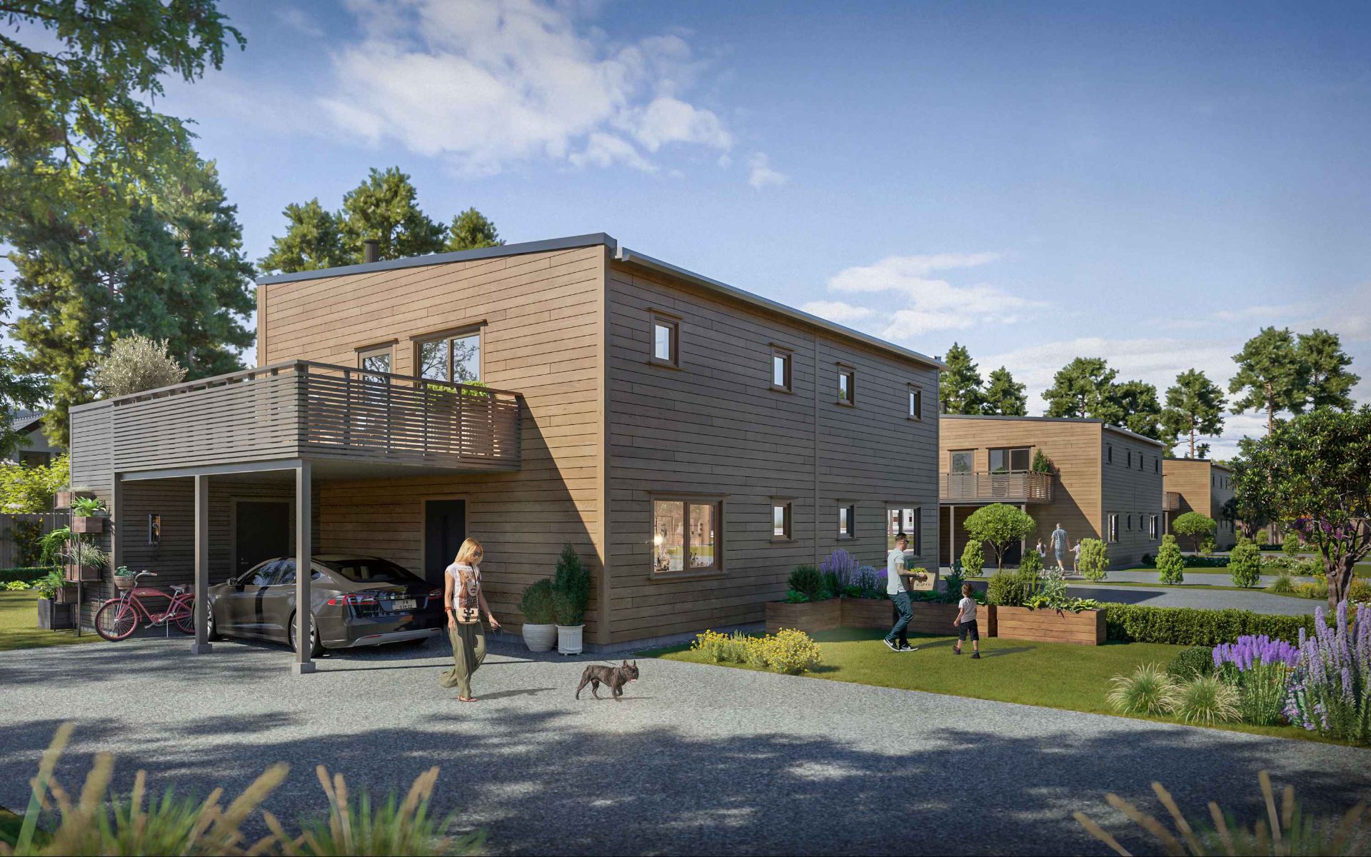 Bøk er en moderne tomannsbolig beregnet for flat tomt. Hver leilighet er på 104 m², men med carport og utvendig bod i tillegg blir leilighetens bruksareal på knappe 130 m².